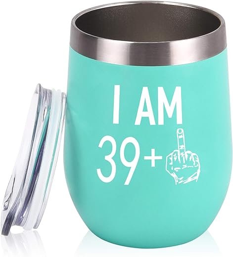 - 40TH BIRTHDAY GIFT FOR WOMEN: This wine tumbler with funny saying is a wonderful idea for you send it to women, friends, aunts, ancles, boss, teacher sisters as gift. Also the funny saying “I AM 39+” makes your gift unique and unforgettable enough when celebrating their 40th birthday as well as showing their positive attitude to life in a humorous way.