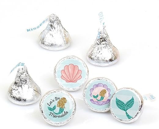 - Let’s Be Mermaids Round Candy Favor Labels INCLUDES 108 candy stickers – perfect for styling adorable little mermaid baby shower or birthday party candy favors. Round candy labels will fit a variety of small candies with a flat, round bottom, such as chocolate candy, wrapped peppermints or gold-wrapped caramel candies.
