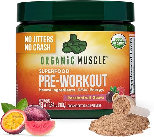 - ENHANCE STRENGTH, FOCUS & ATHLETIC PERFORMANCE: Harness the power of 20 superfoods with Organic Muscle’s Superfood Pre-Workout. Help elevate your athletic performance and enhance focus with 150mg of naturally sourced caffeine and delicious Passionfruit Guava flavor.