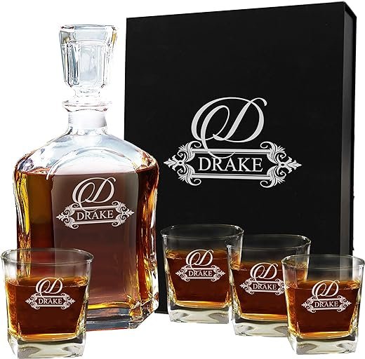 - FREE ENGRAVING – Customize your decanter and glasses with any name and initial at NO EXTRA COST